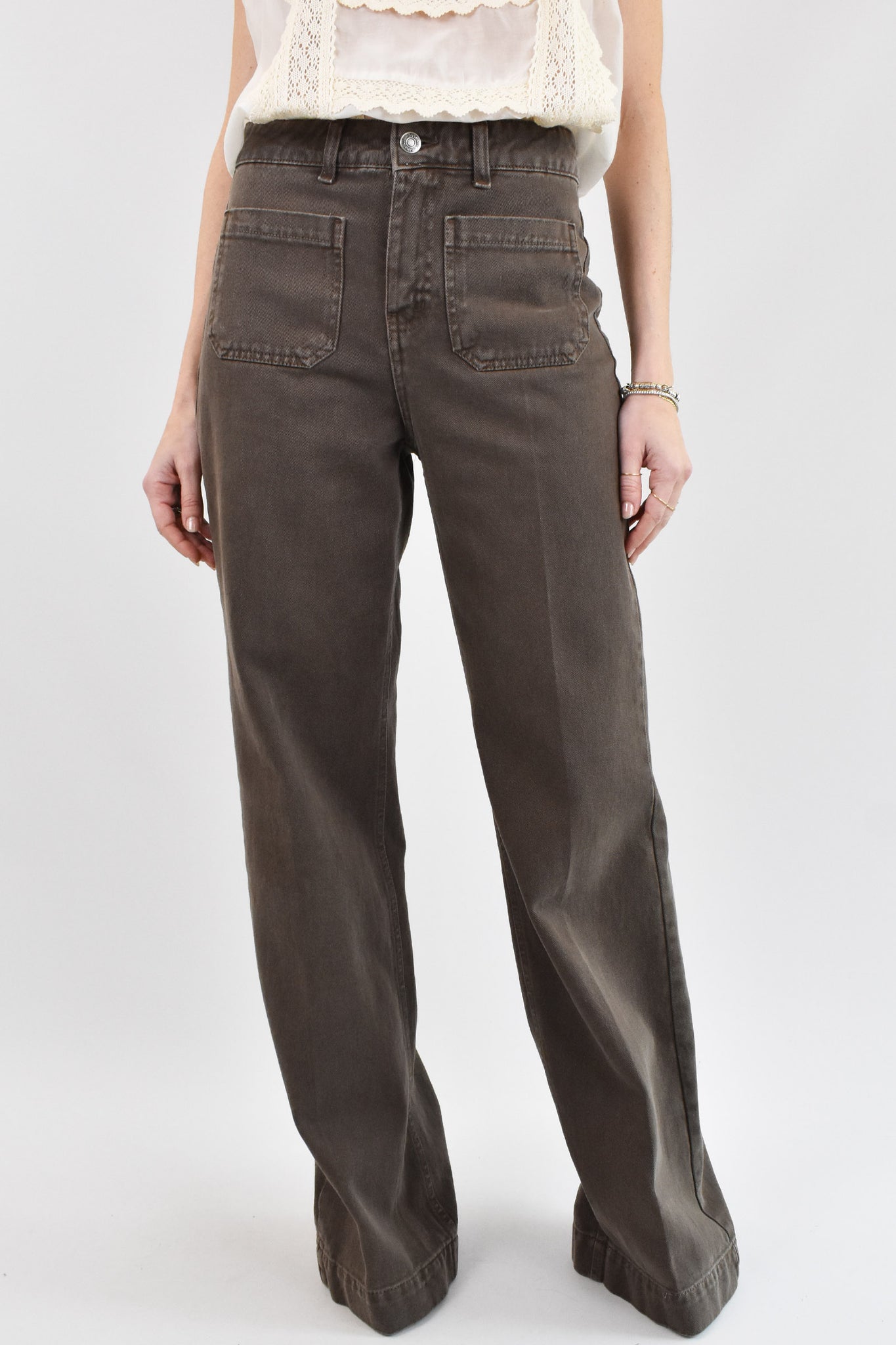 Pantalone flare fit con tasche frontali applicate e tasche posteriori con abbottonatura. Linea pulita per slanciare la silhouette, colore stupendo da abbinare a tutti i toni di tendenza di questa stagione! Vita media, vestibilità regolare.