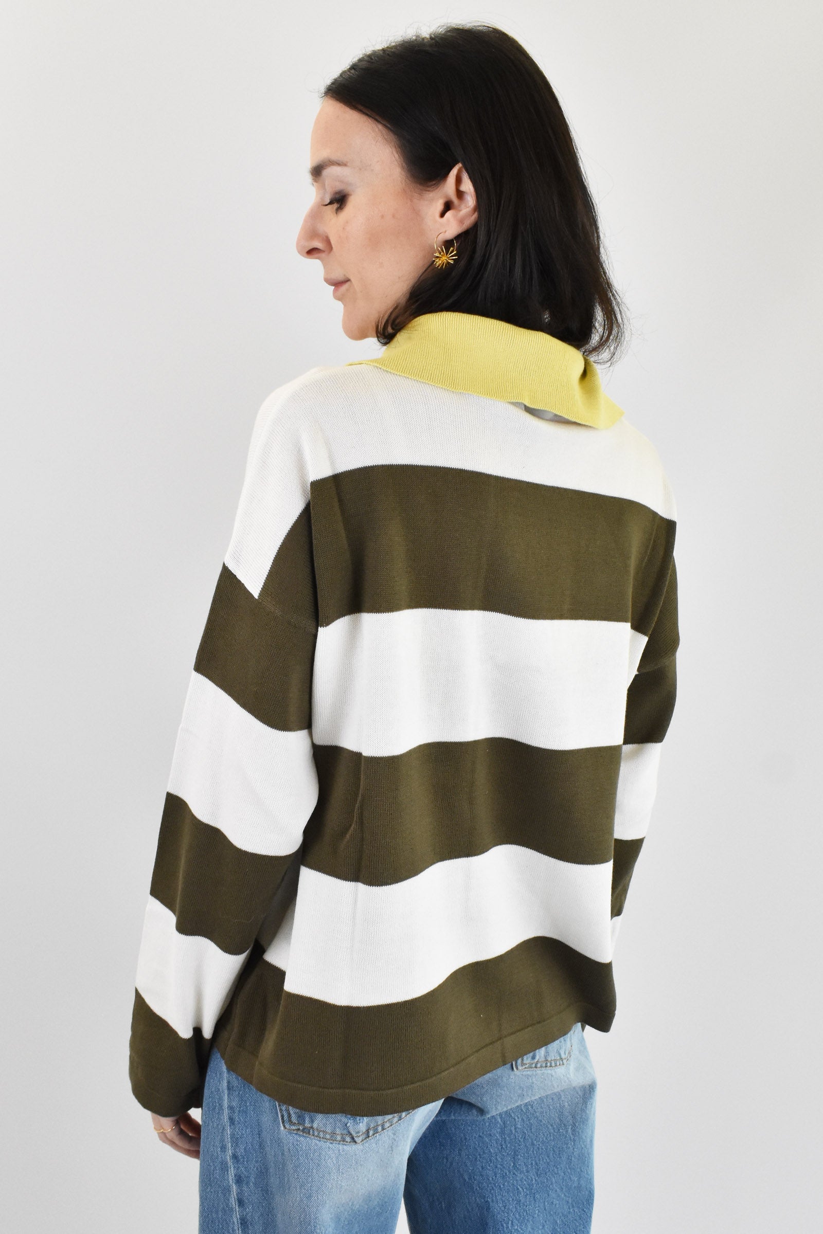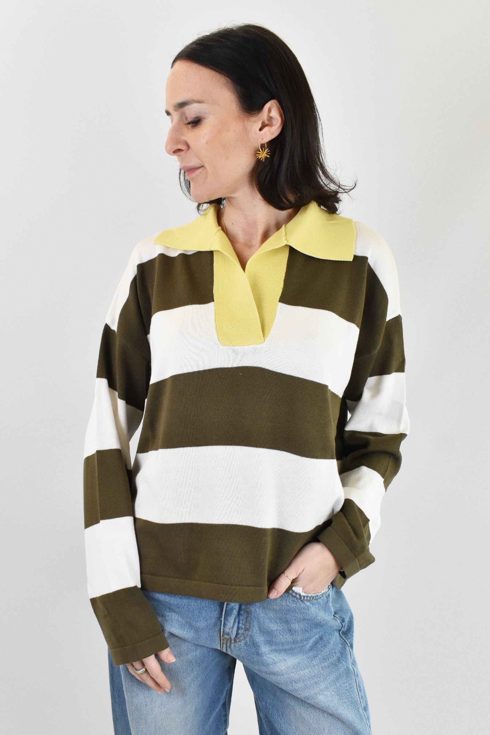 Polo rigata stile DERBY con colletto a contrasto, vestibilità morbida, taglia unica