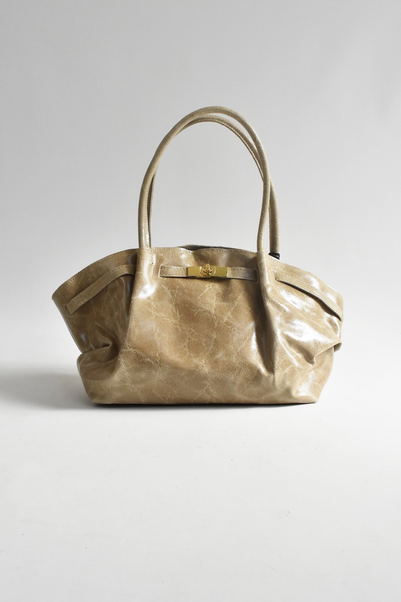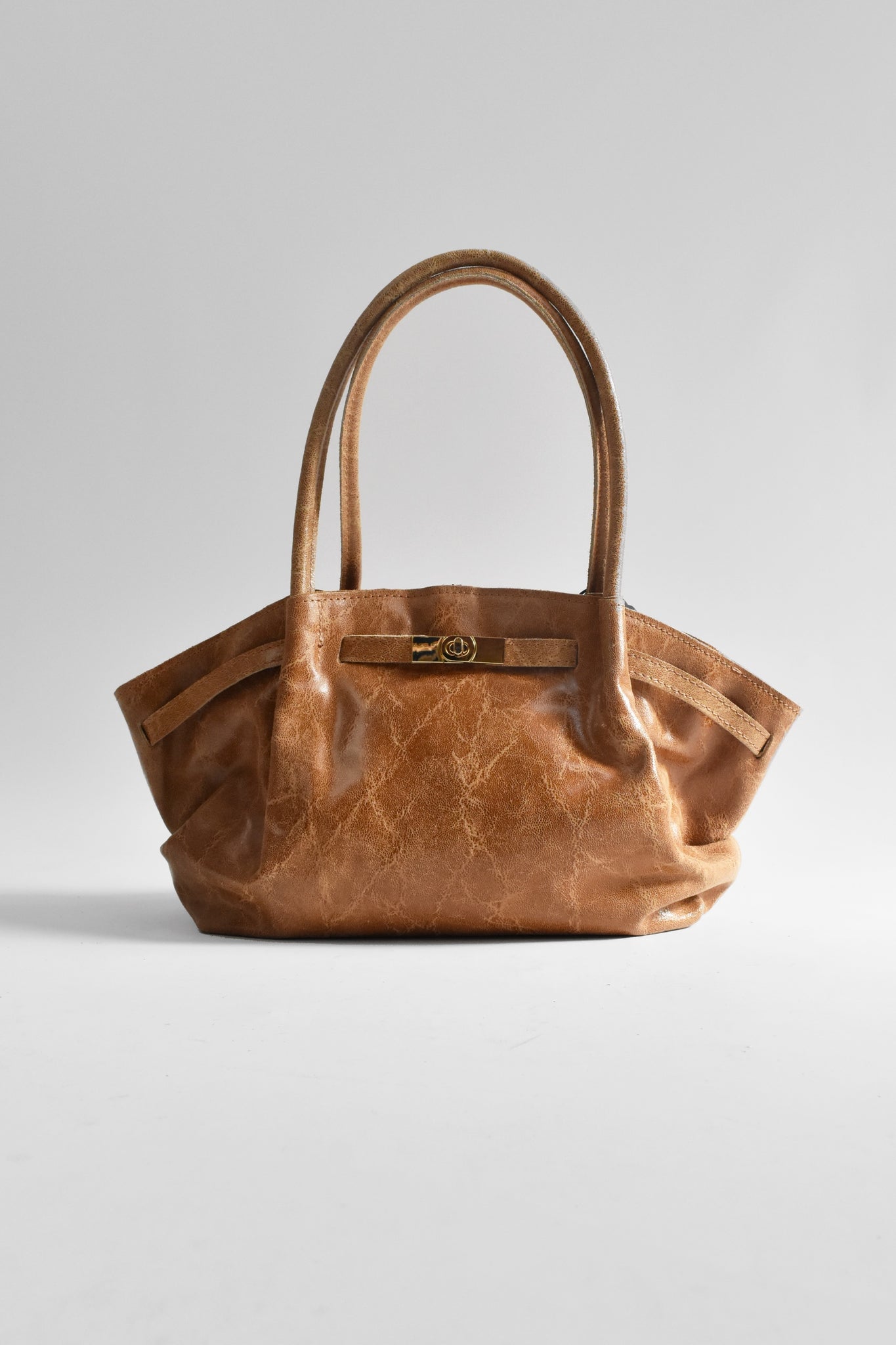 Borsa in pelle lucida 'CITY', chiusura con morsetto frontale e zip interna, tasca interna e tracolla removibile