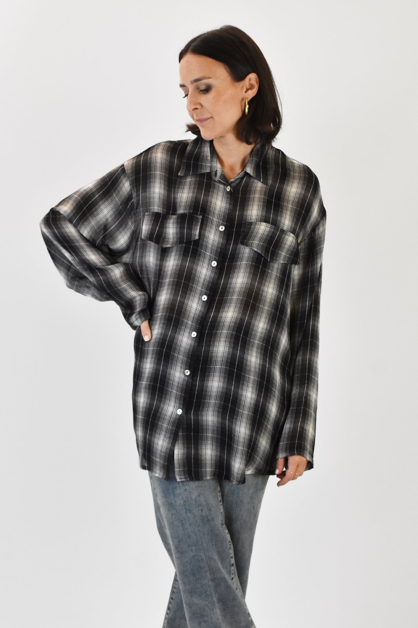 Camicia lunga in garza di lana leggera con finte tasche frontali, vestibilità morbida