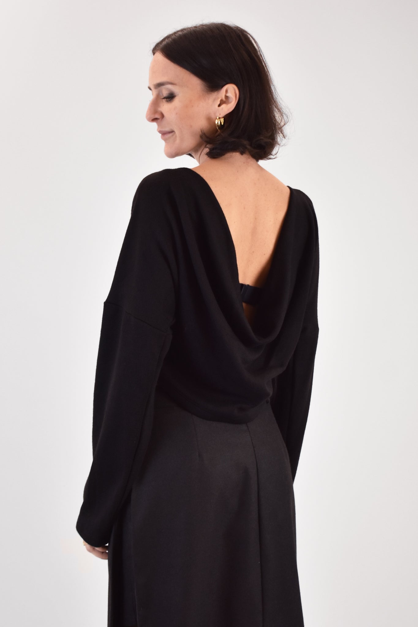 Maglia crop in misto viscosa con scollo a gronda sulla schiena, maniche lunghe, vestibilità regolare