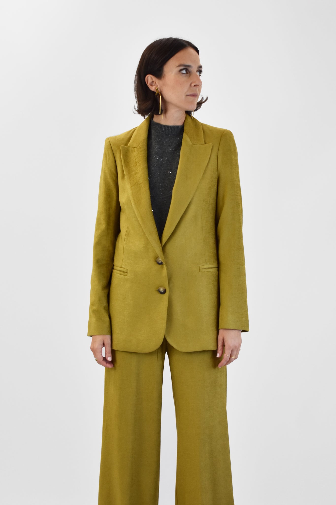 Giacca monopetto a 2 bottoni in velluto, tasche frontali, spacco posteriore, vestibilità regolare