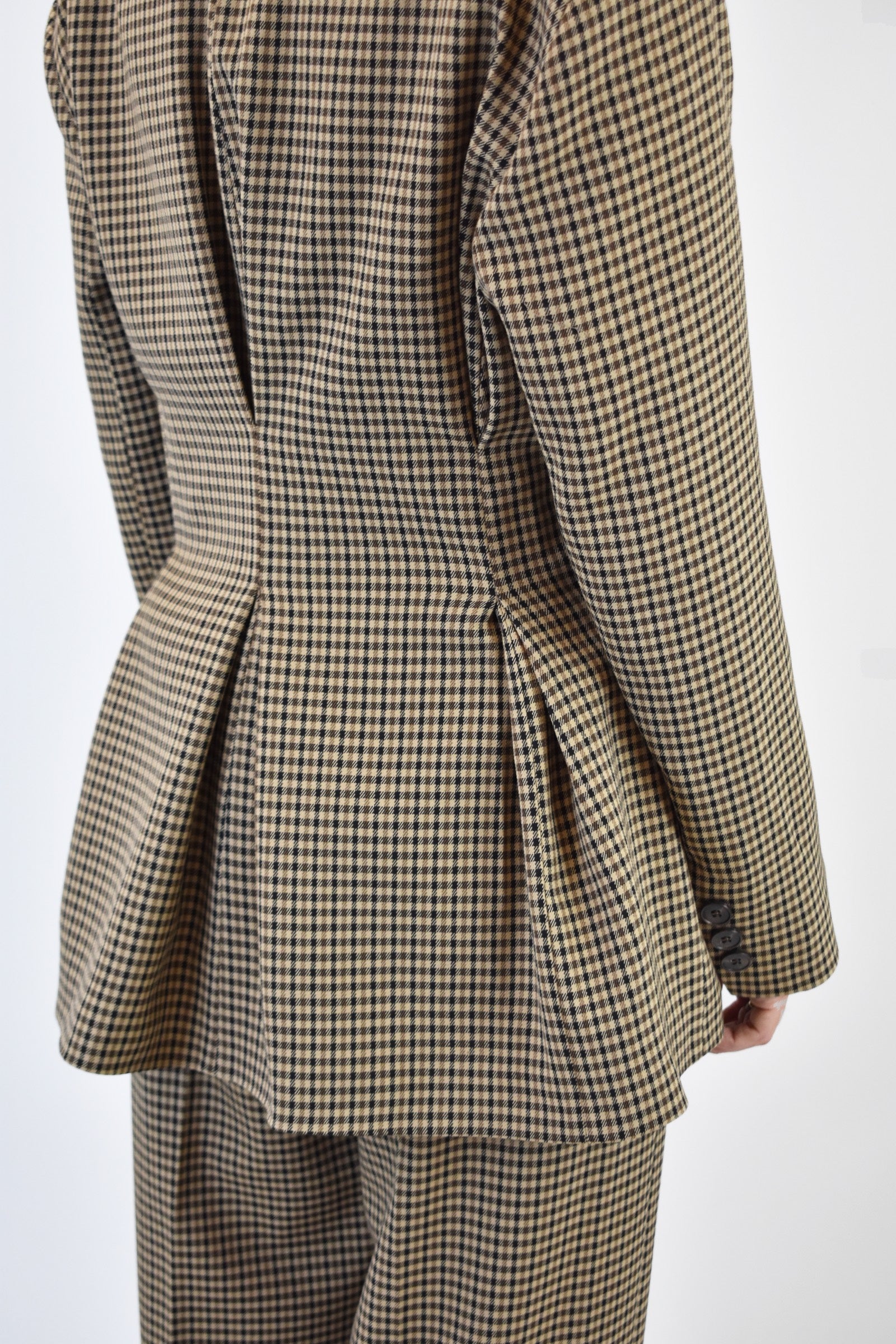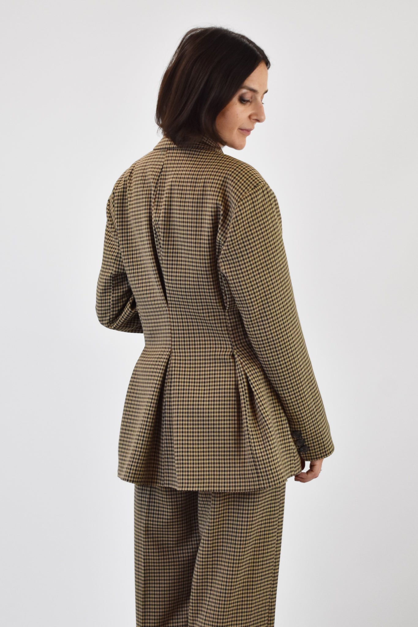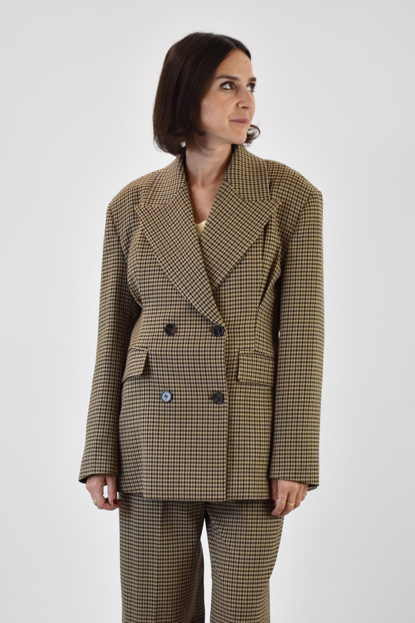 Giacca a quadri doppiopetto con maxi spallina e riprese in vita e sulla schiena, vestibilità regolare