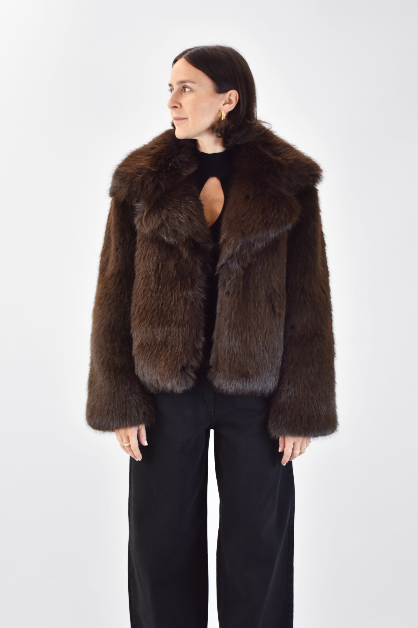 Eco-pelliccia con revers, chiusura con gancio frontale, vestibilità regolare