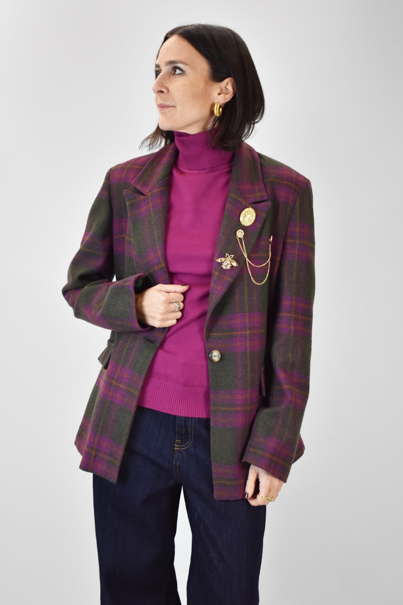 Giacca a quadri con spille