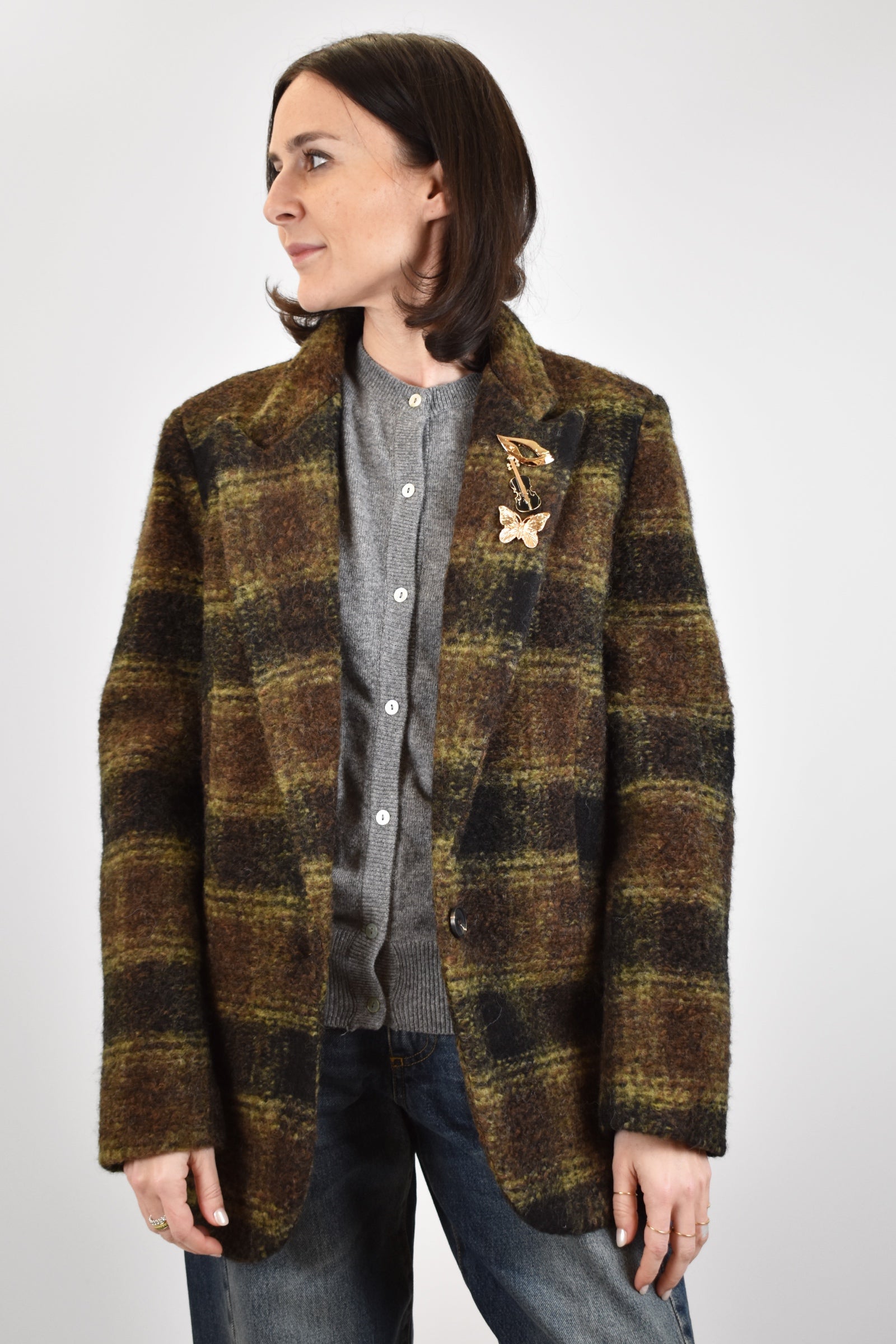 Giacca quadri in misto lana, monopetto con spille, tasche frontali e spacco posteriore, vestibilità regolare