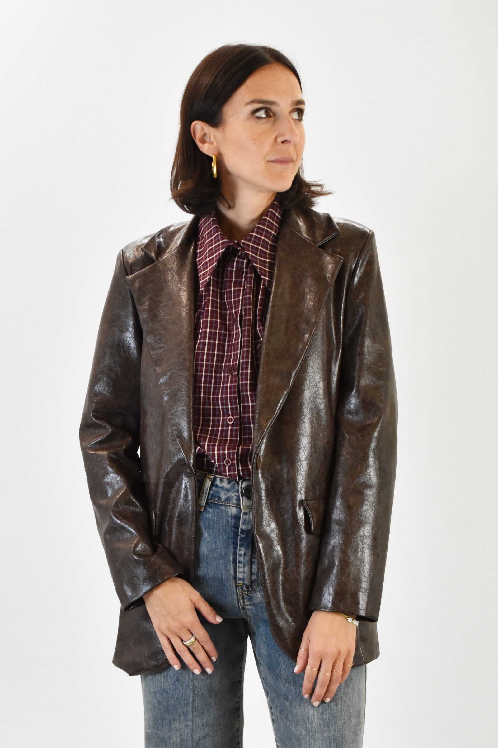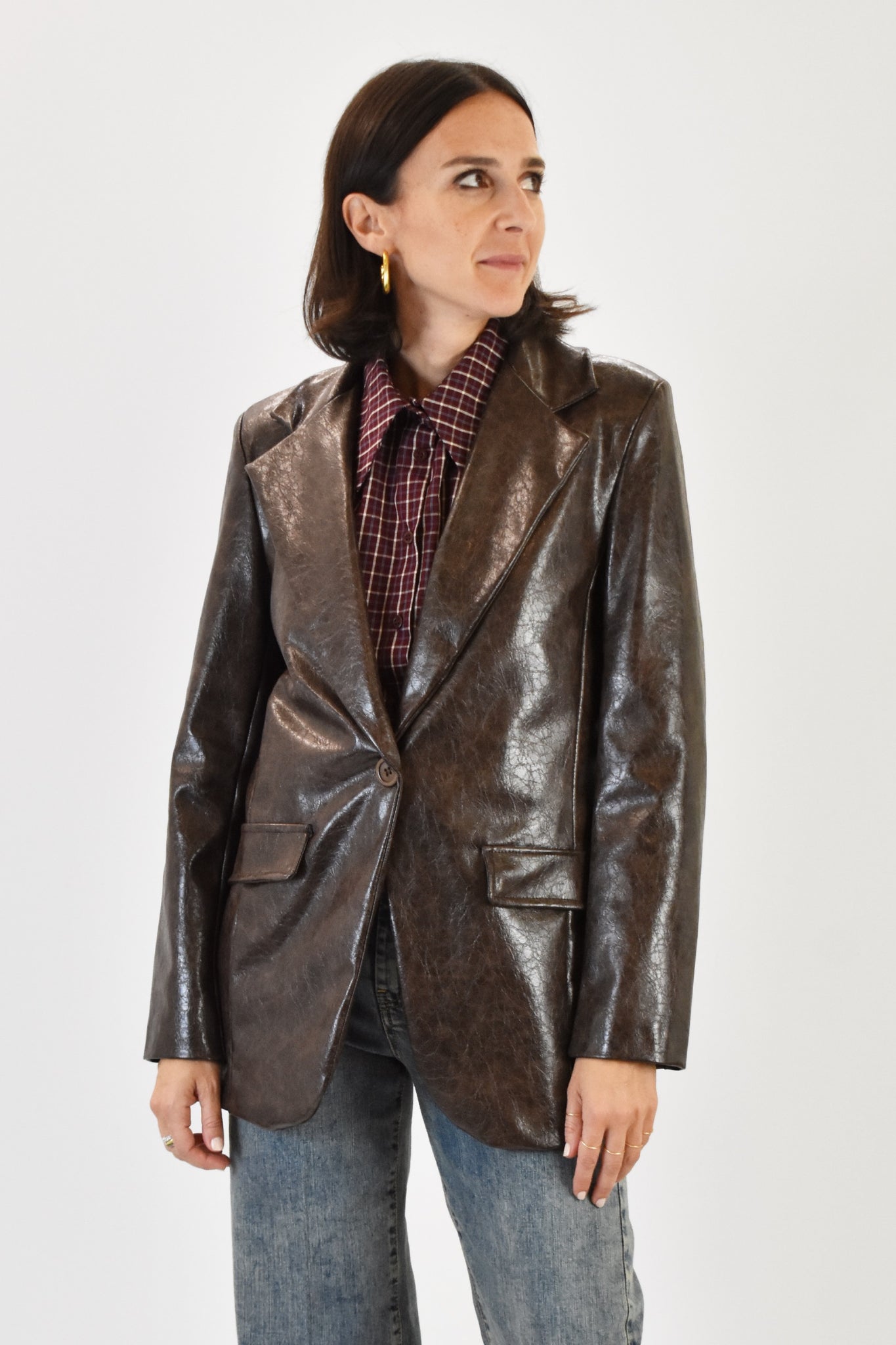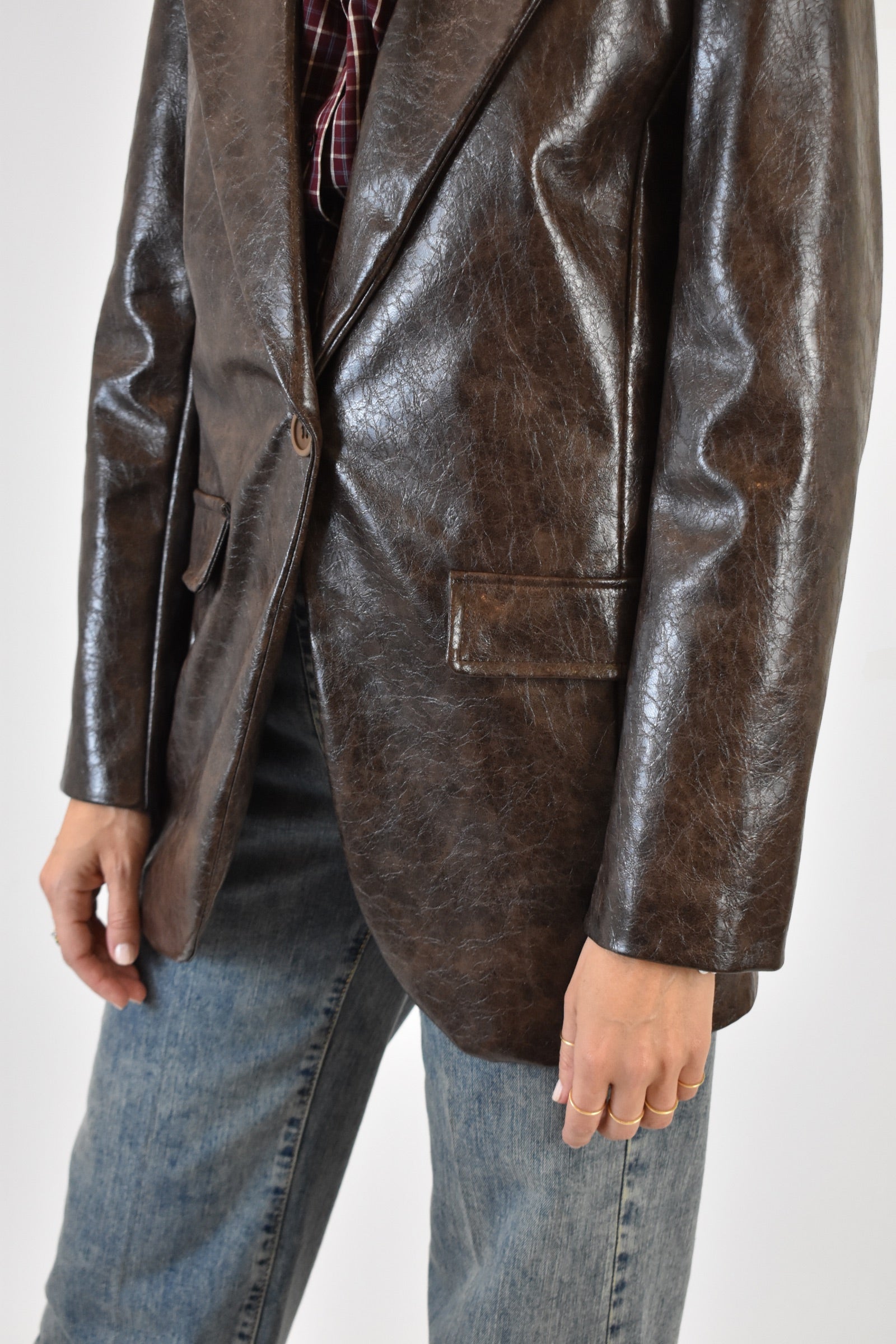 Giacca in ecopelle effetto vintage monopetto, vestibilità regolare