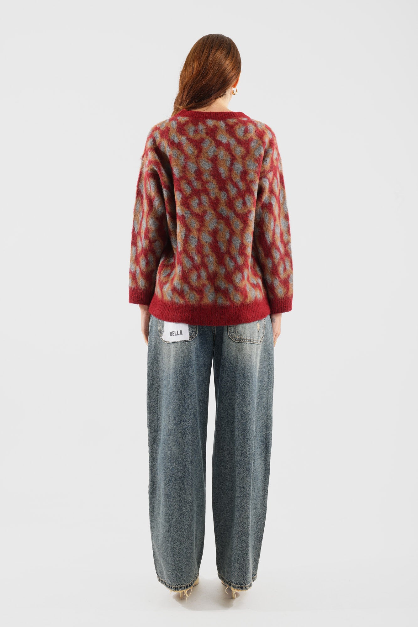 Maglia jaquard maculata girocollo effetto brillantinato, taglia unica
