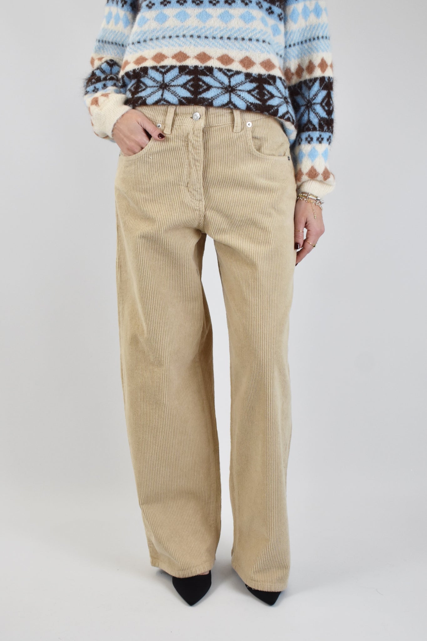 Pantalone BELLA di HaveOne in velluto a coste, modello iconico del brand proposto nel tessuto invernale e caldo perfetto con maglioni e cappotti per un look confortevole e cool. Modello vita medio-bassa che si stringe leggermente sul fondo, bellissimo con stivaletti, sabot e tacchi.