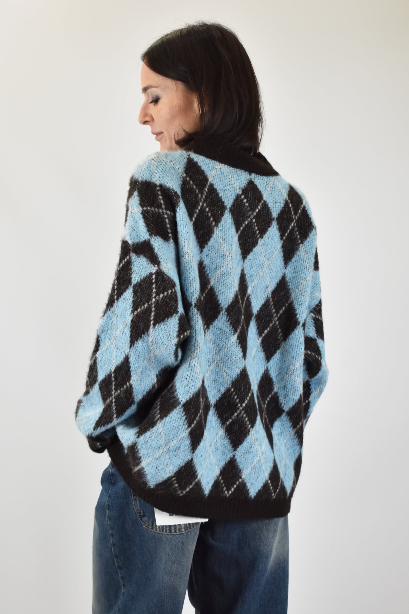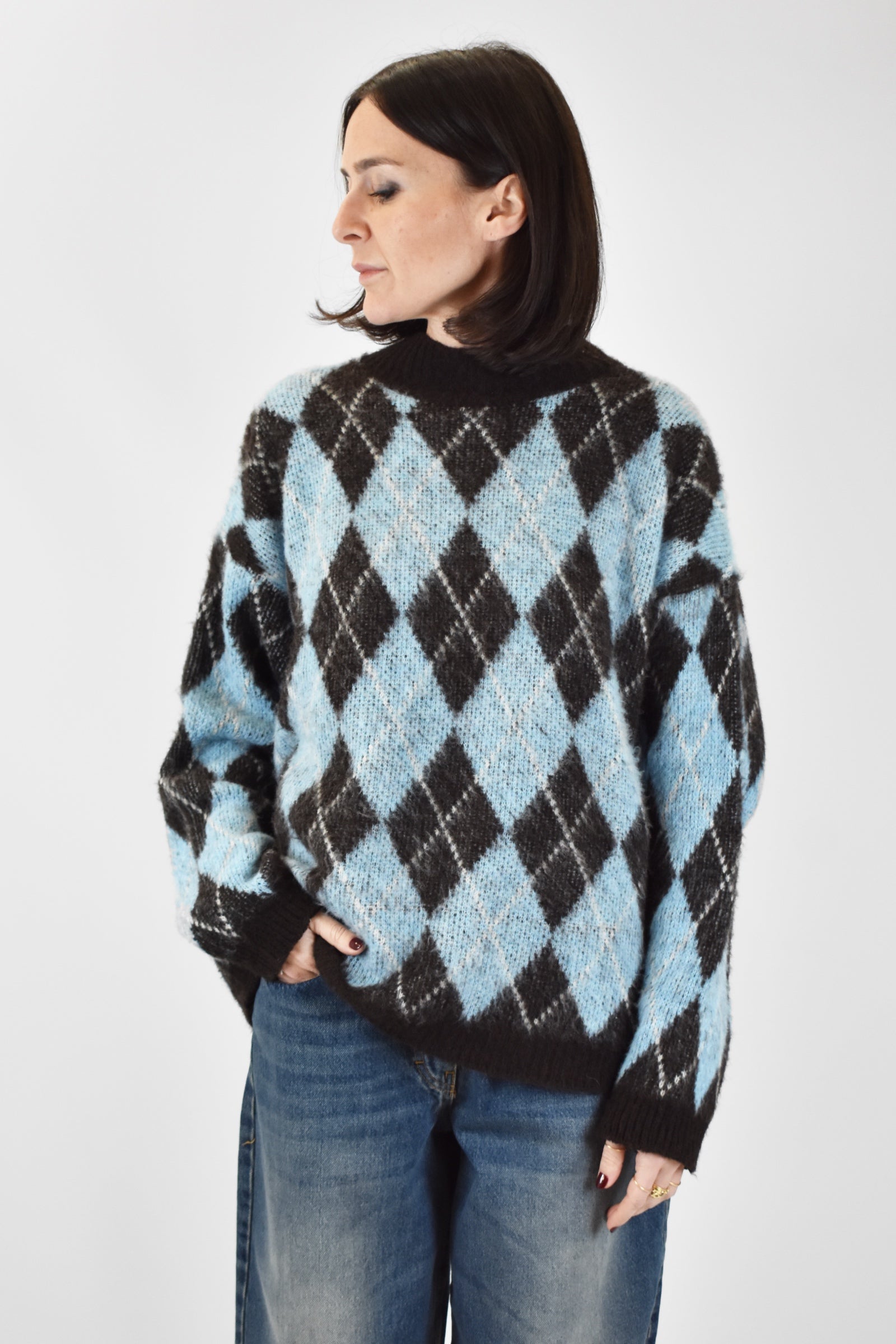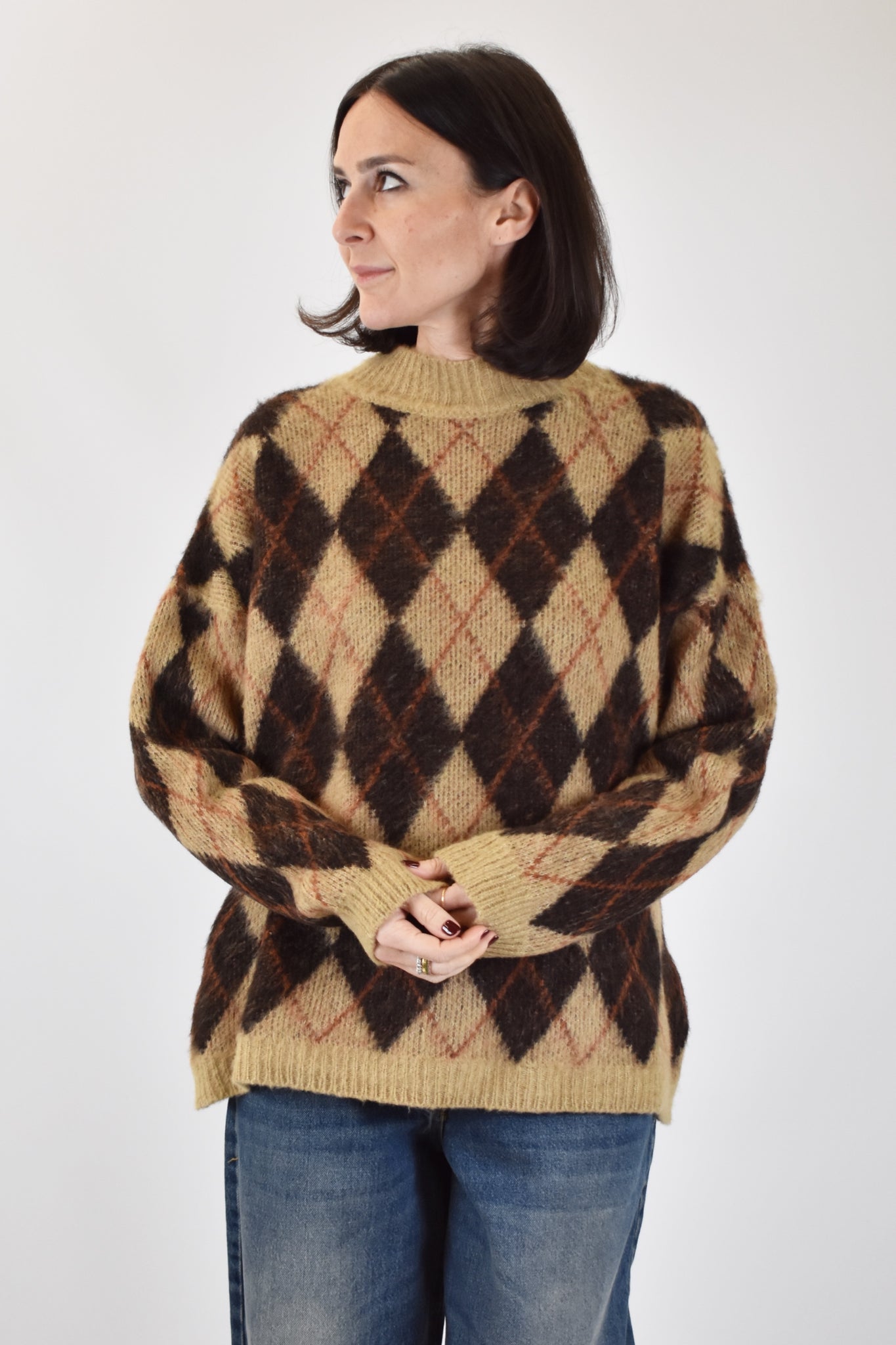 Maglia jaquard girocollo fantasia a rombi, taglia unica