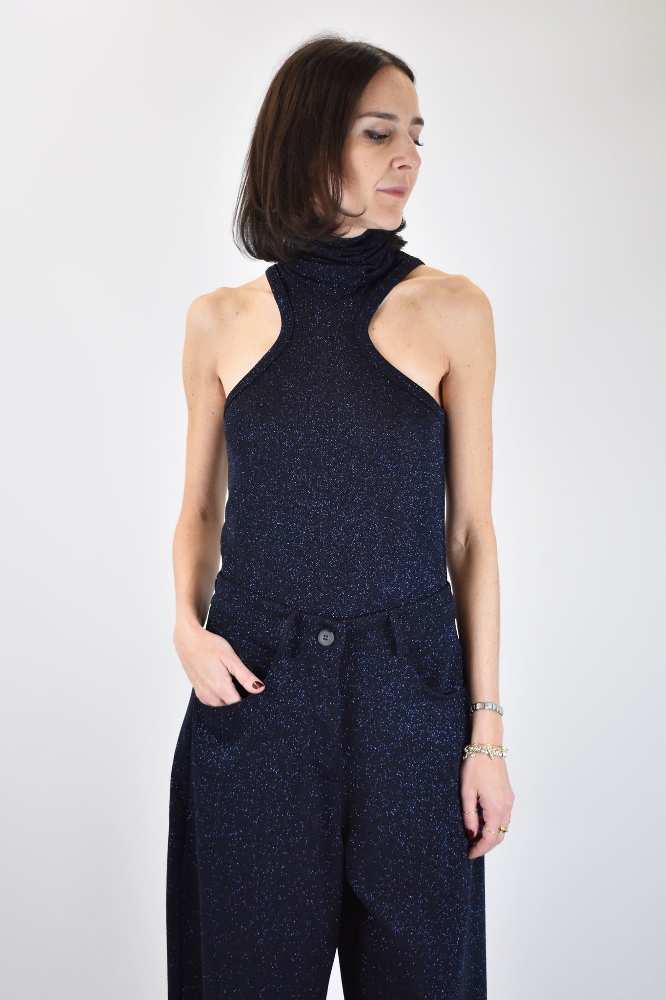 Body in maglia con lurex, collo alto e scollo olimpionico, vestibilità regolare