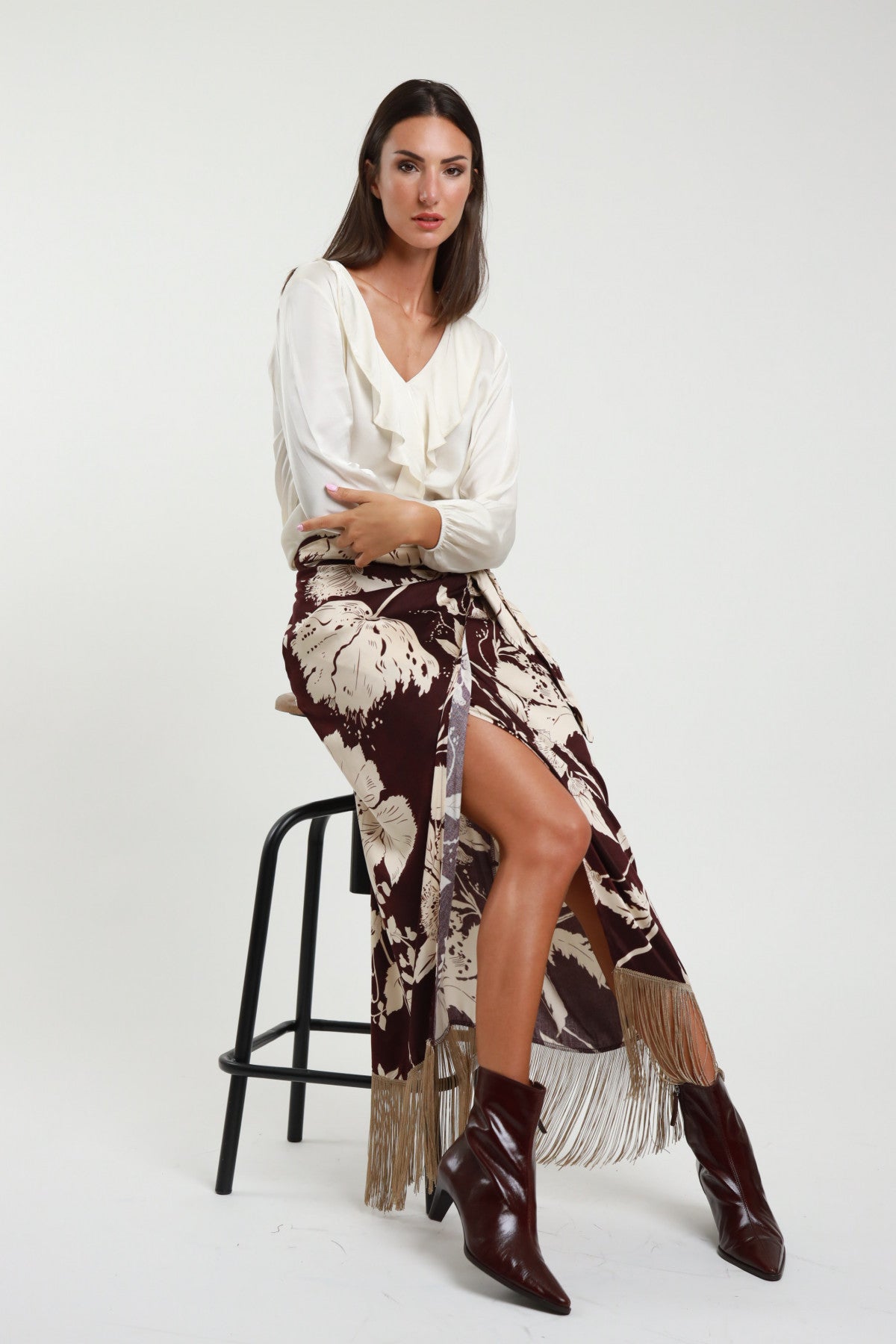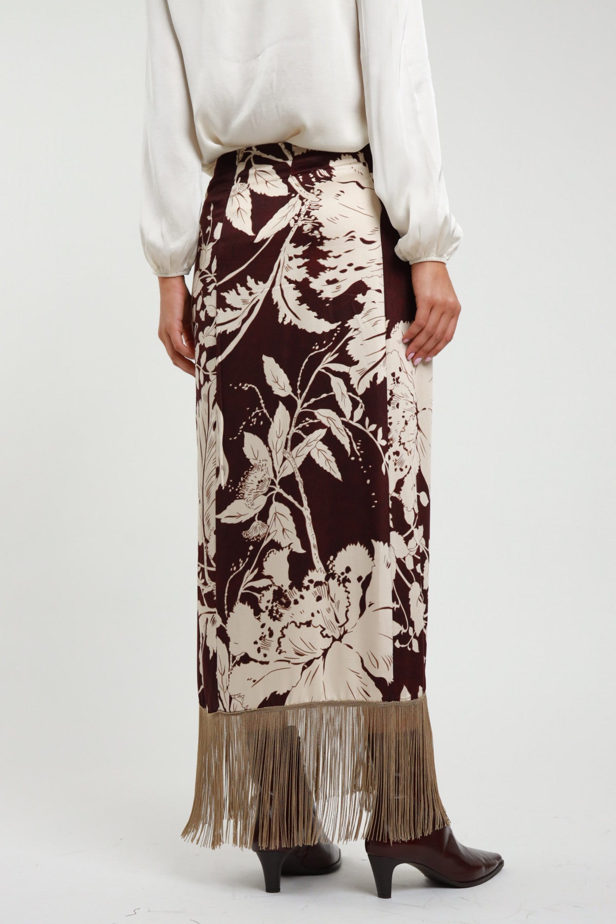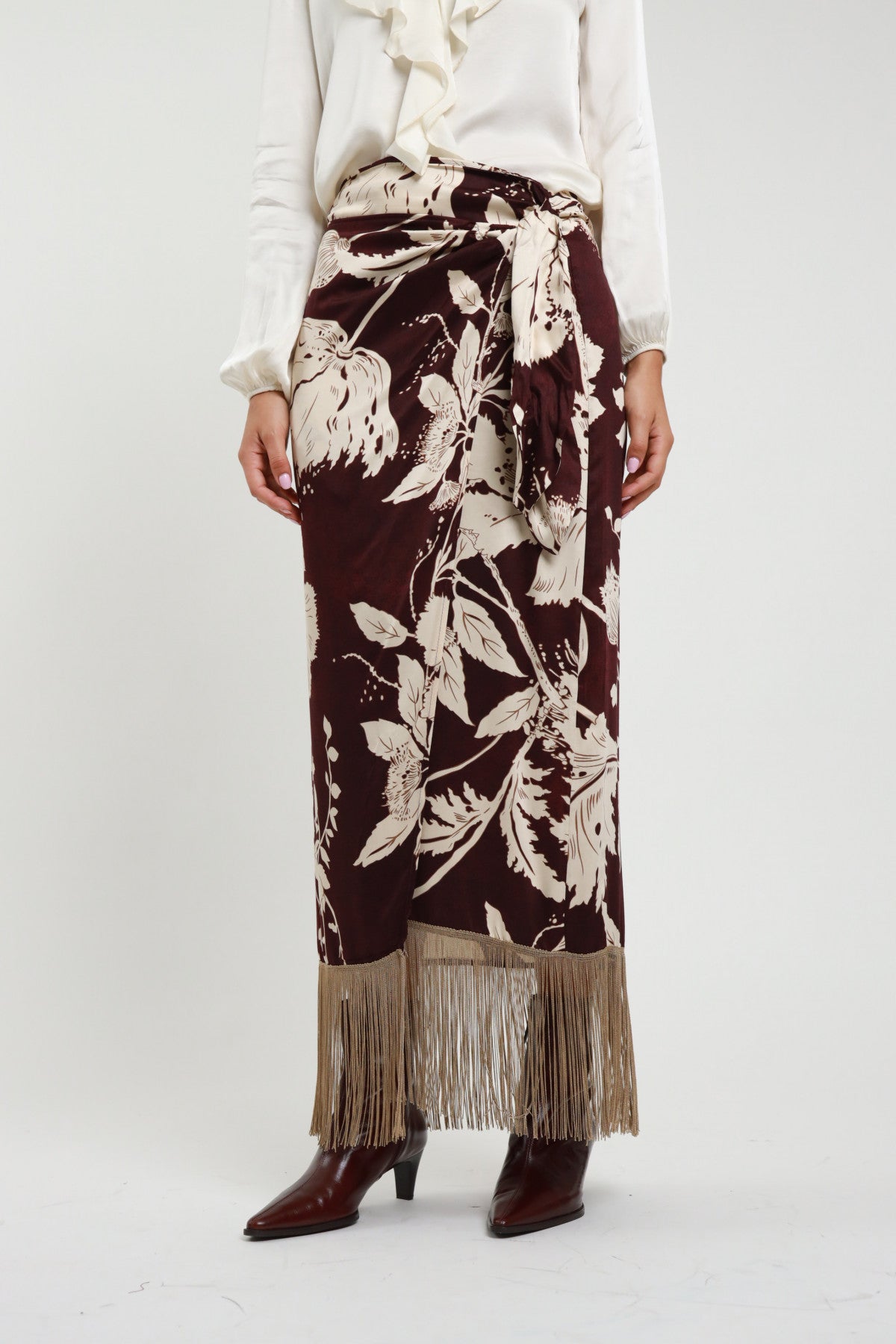 Gonna Lunga Pareo Stampa Floreale con Frange