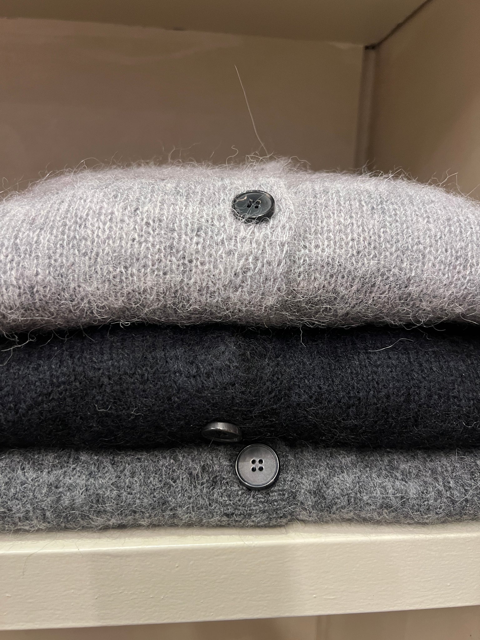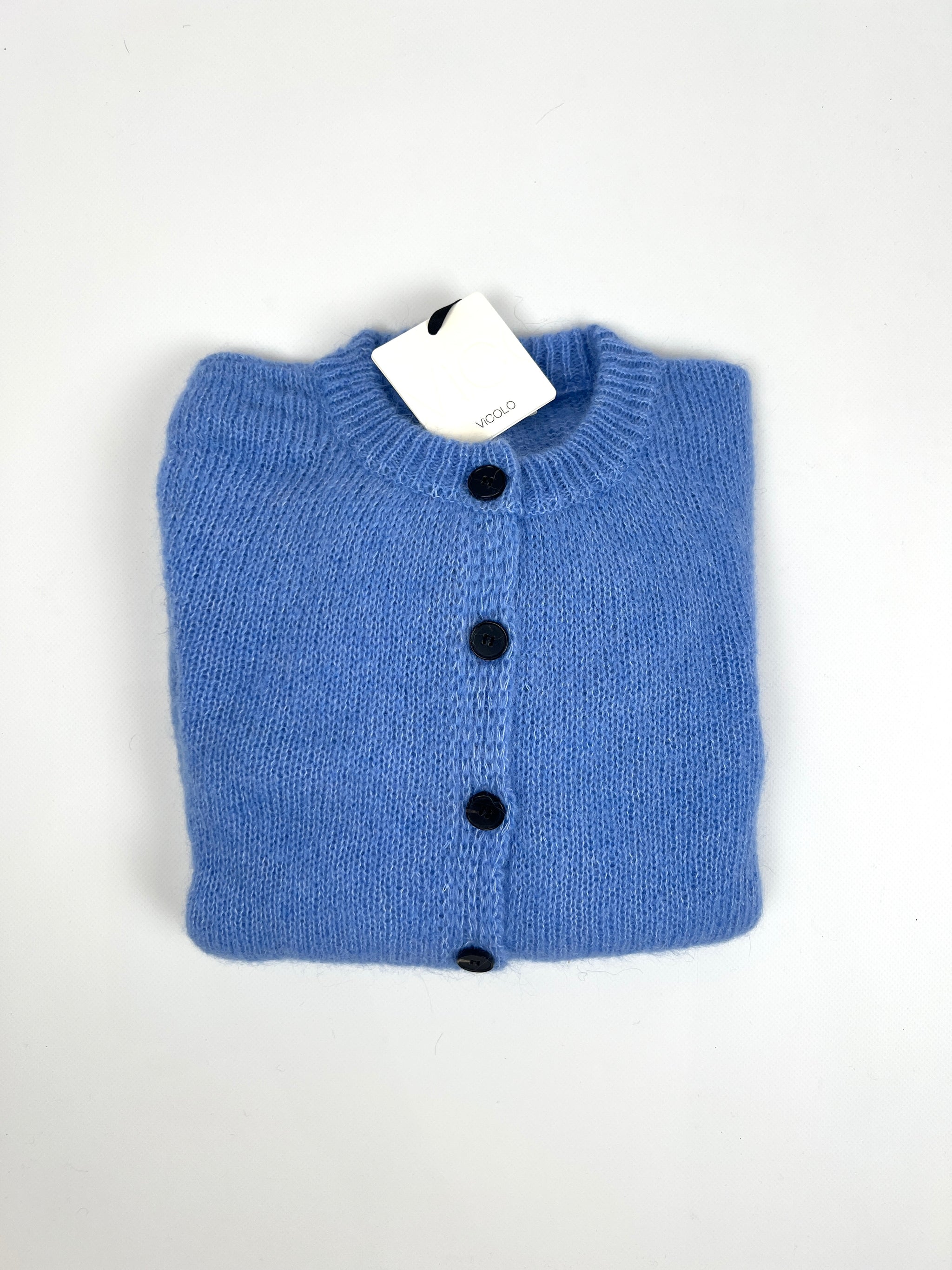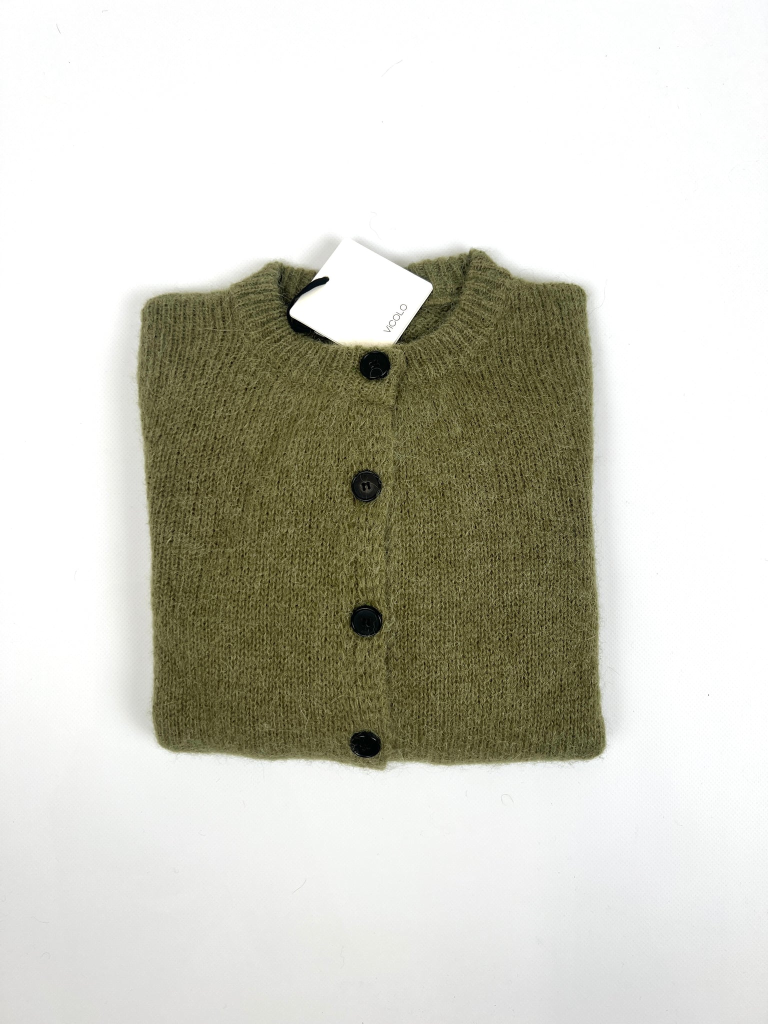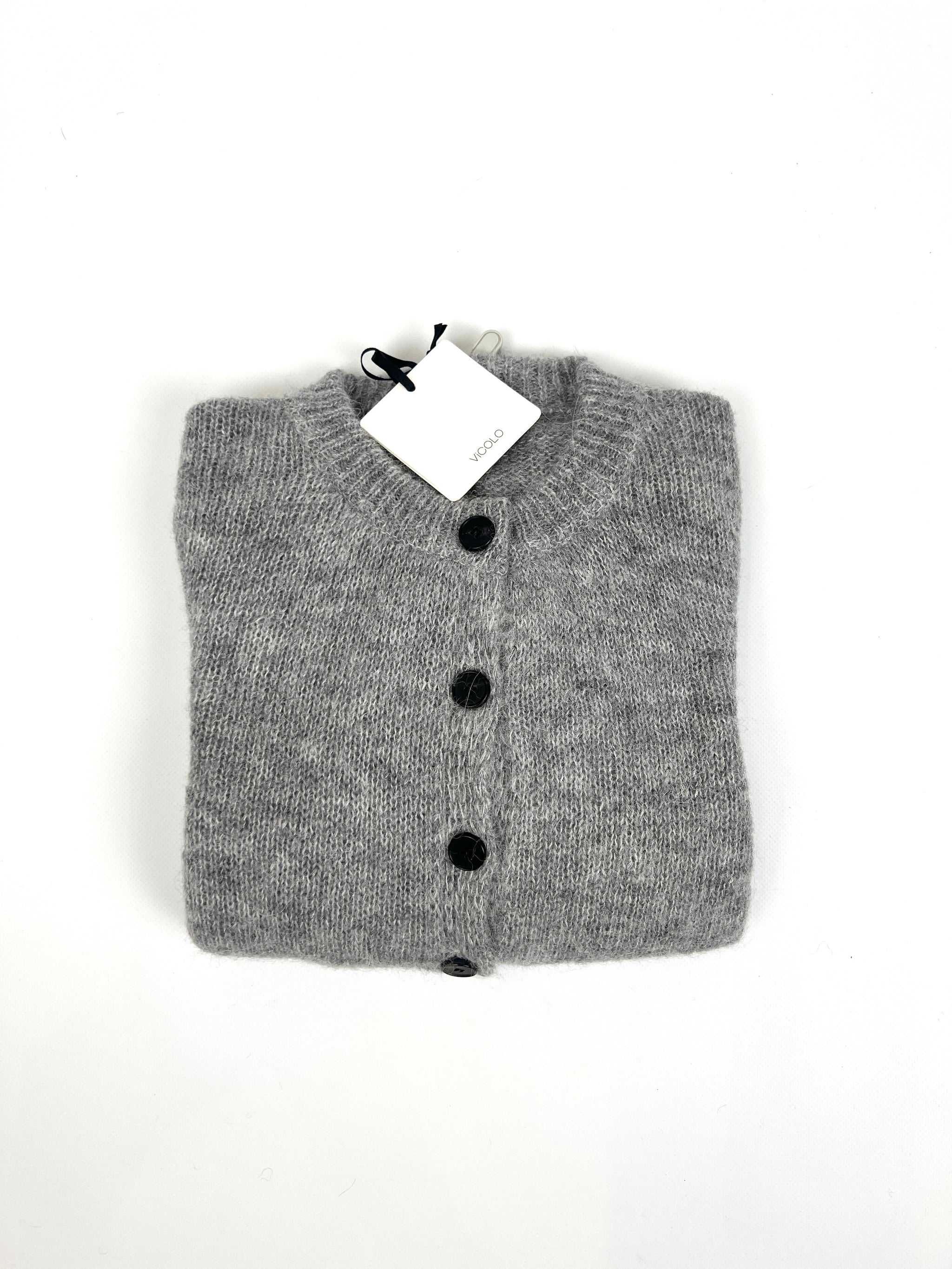 Cardigan girocollo misto alpaca con bottoncini frontali, taglia unica