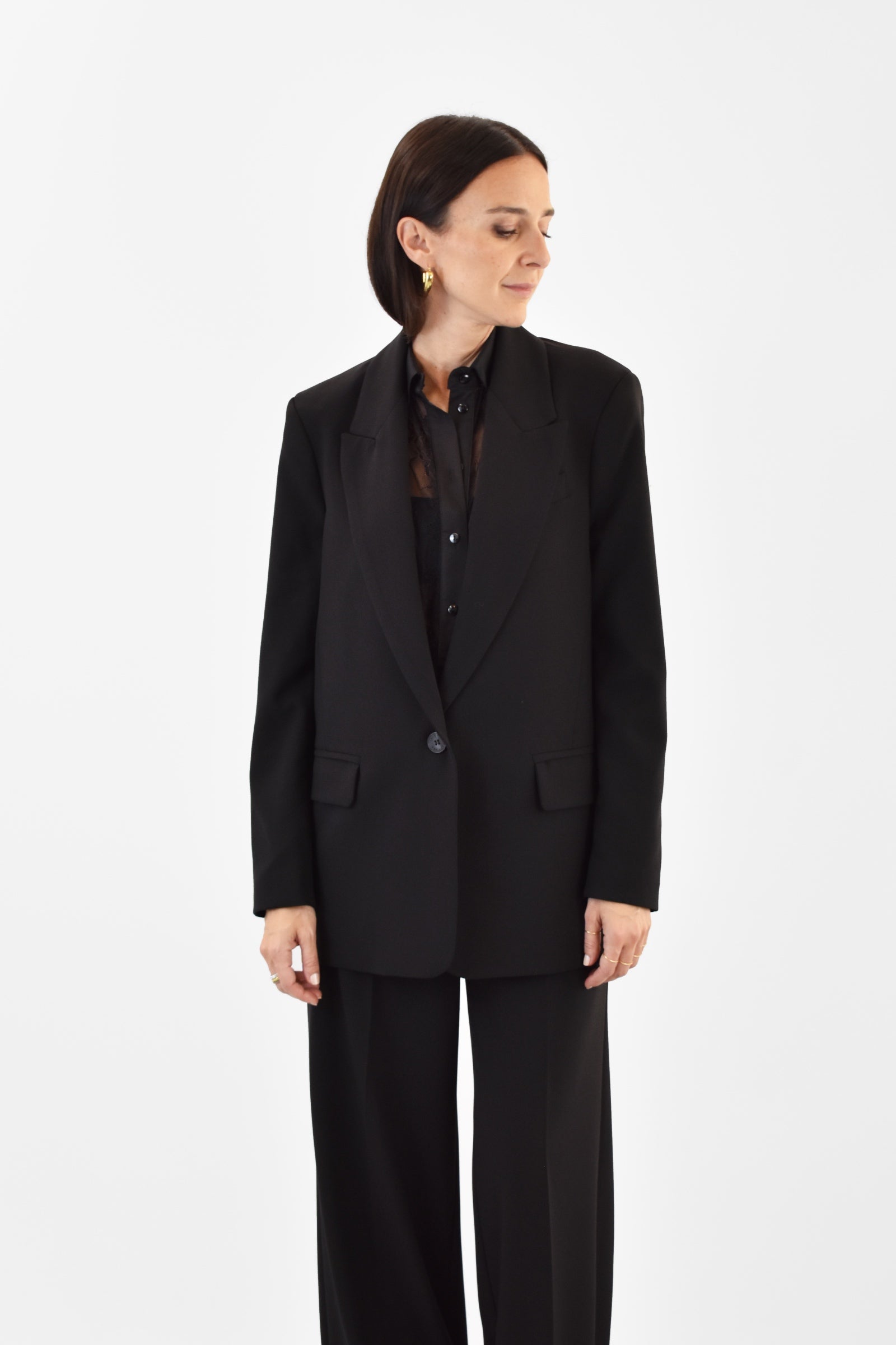 Giacca over maschile in misto viscosa, monopetto con chiusura a 1 bottone, tasche frontali a patta, polsini e spacco posteriore, vestibilità regolare