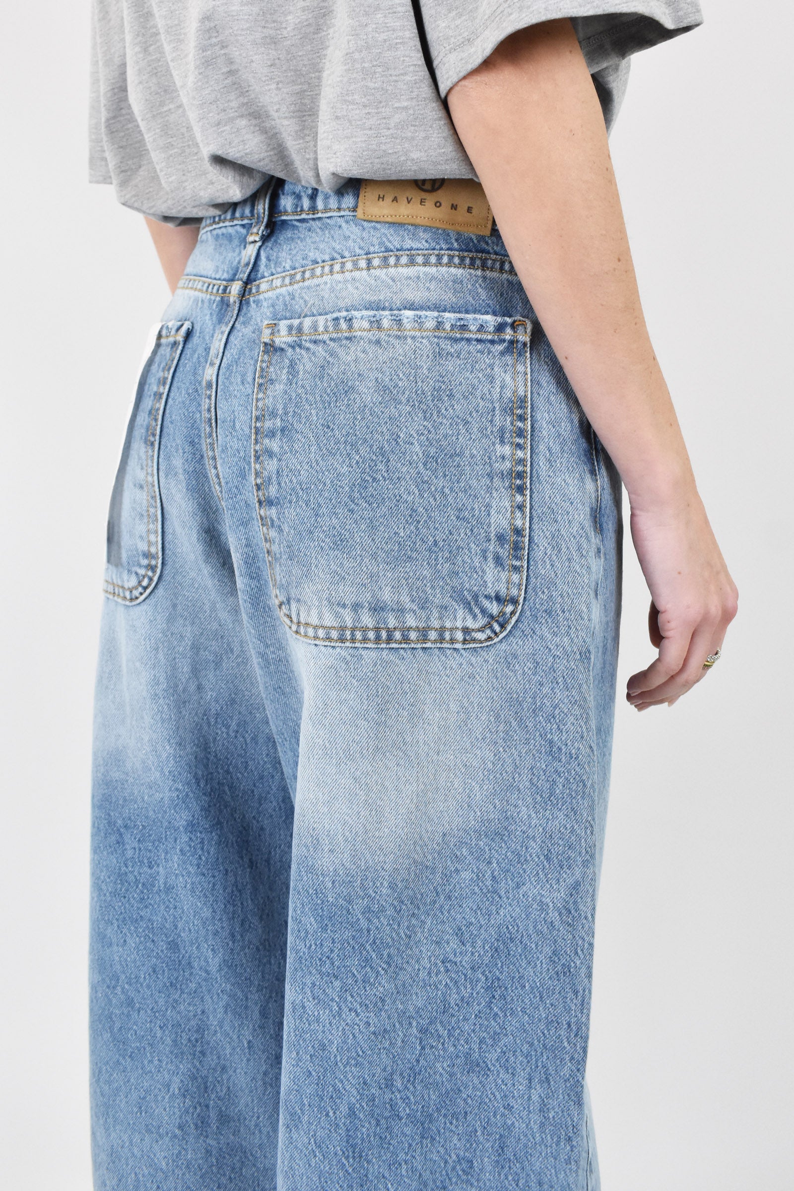 Pantalone BELLA in versione denim chiaro. Vita medio-bassa, taglio 5 tasche, gamba morbida che si stringe leggermente sul finale. Adatto a una sneakers ma perfetto anche con stivaletti o décolleté.