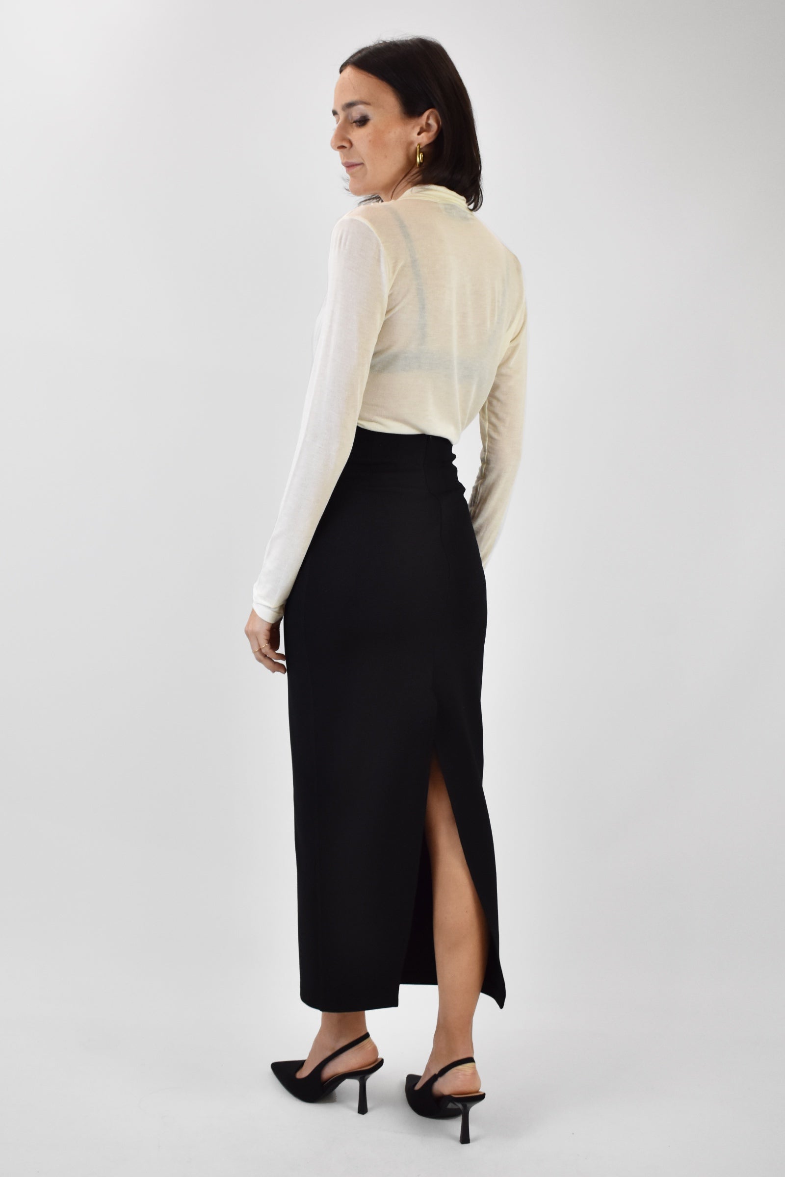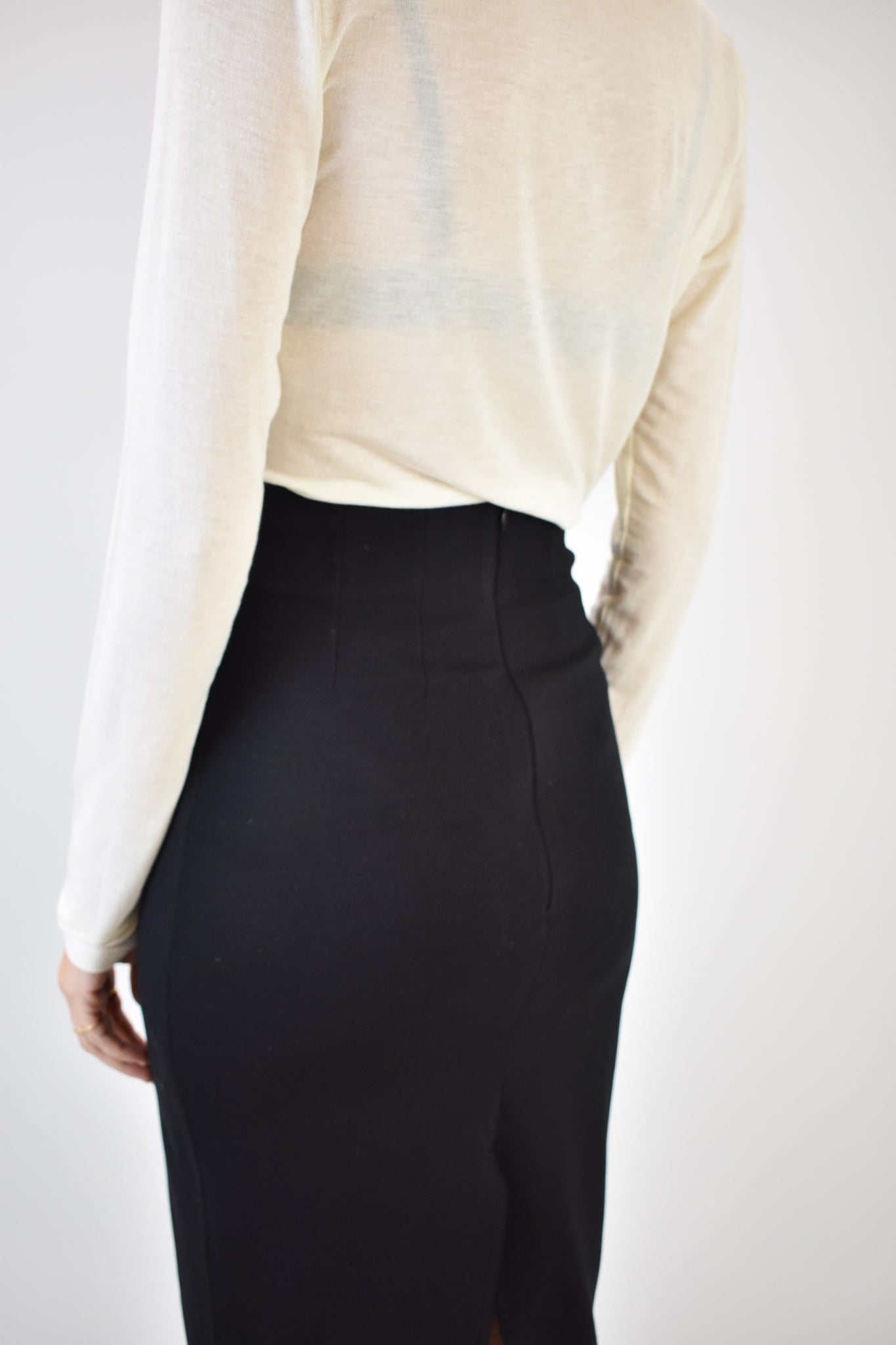 Longuette a vita alta in tessuto elasticizzato Punto Milano con spacco posteriore e zip, vestibilità regolare