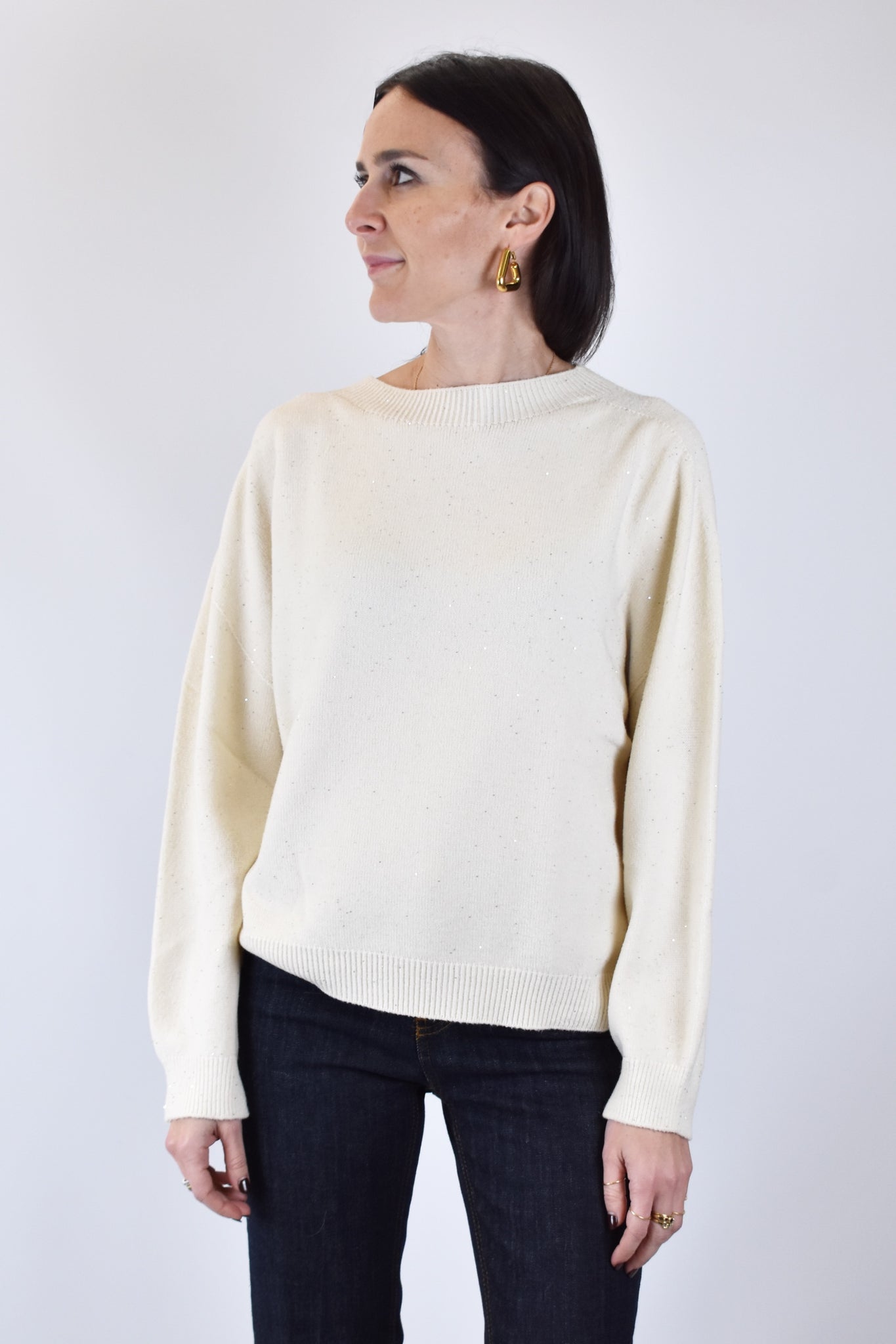 Maglia girocollo manica lunga ricoperta di micro paillettes, taglia unica