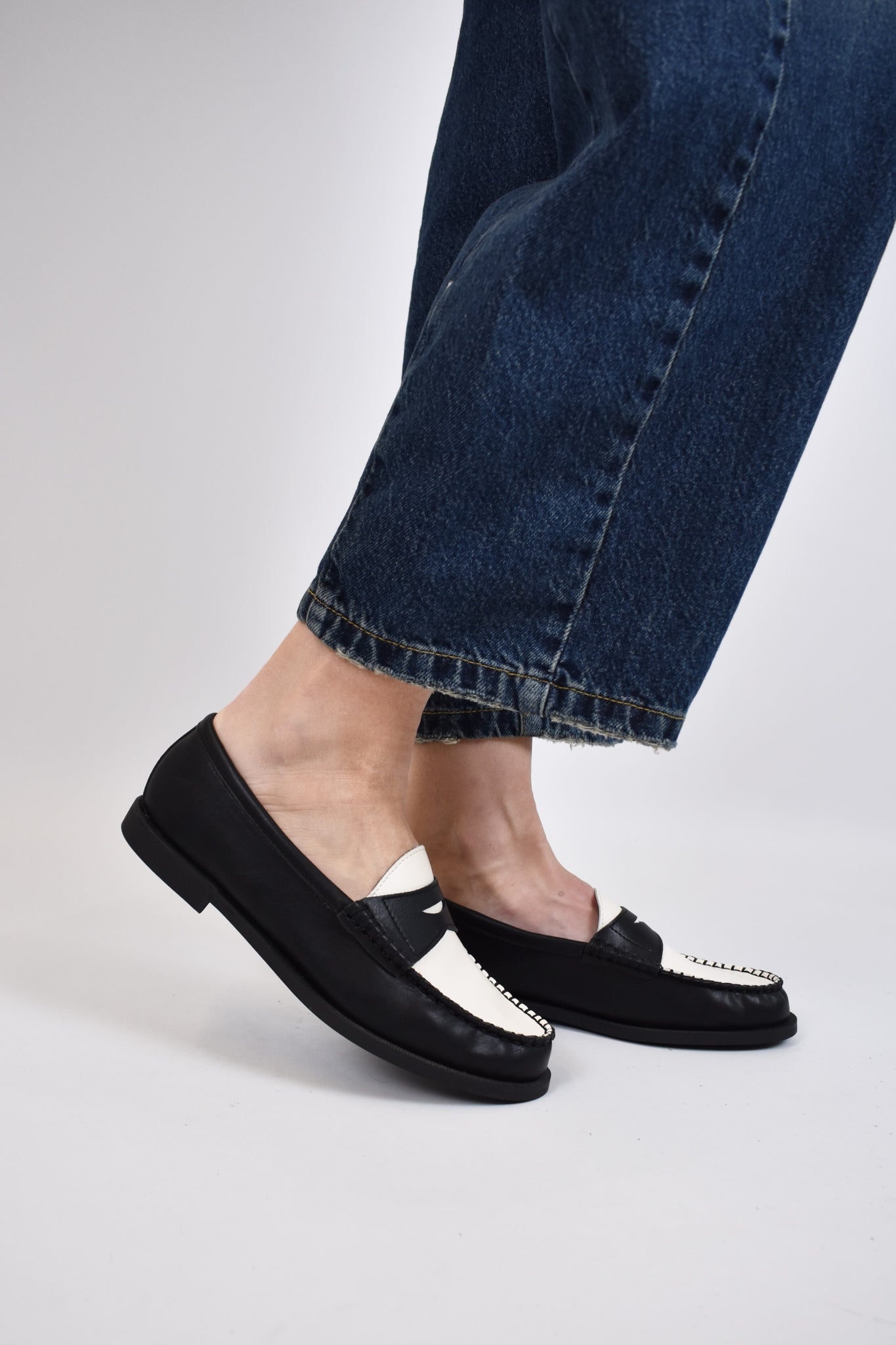 Questo penny loafer è un mocassino 4 stagioni caratterizzato dal classico contrasto bianco e nero, con tomaia in ecopelle sfoderata, tacco modellato e suola in gomma per offrire resistenza, flessibilità e impermeabilità. Comodissimo, ti accompagnerà nelle tue giornate con un tocco di stile sempre attuale.