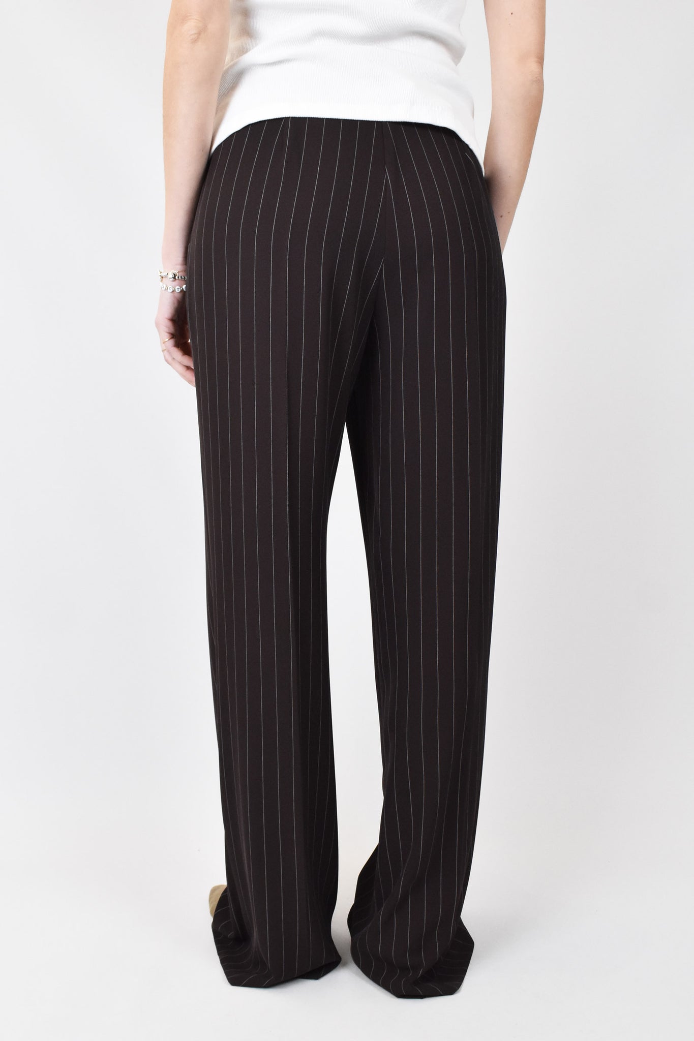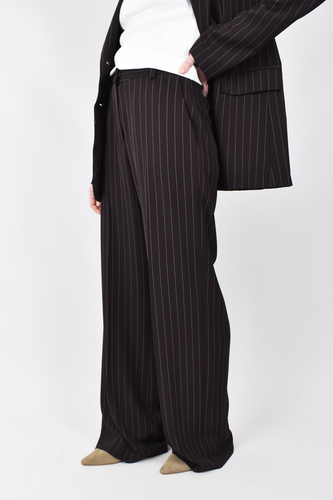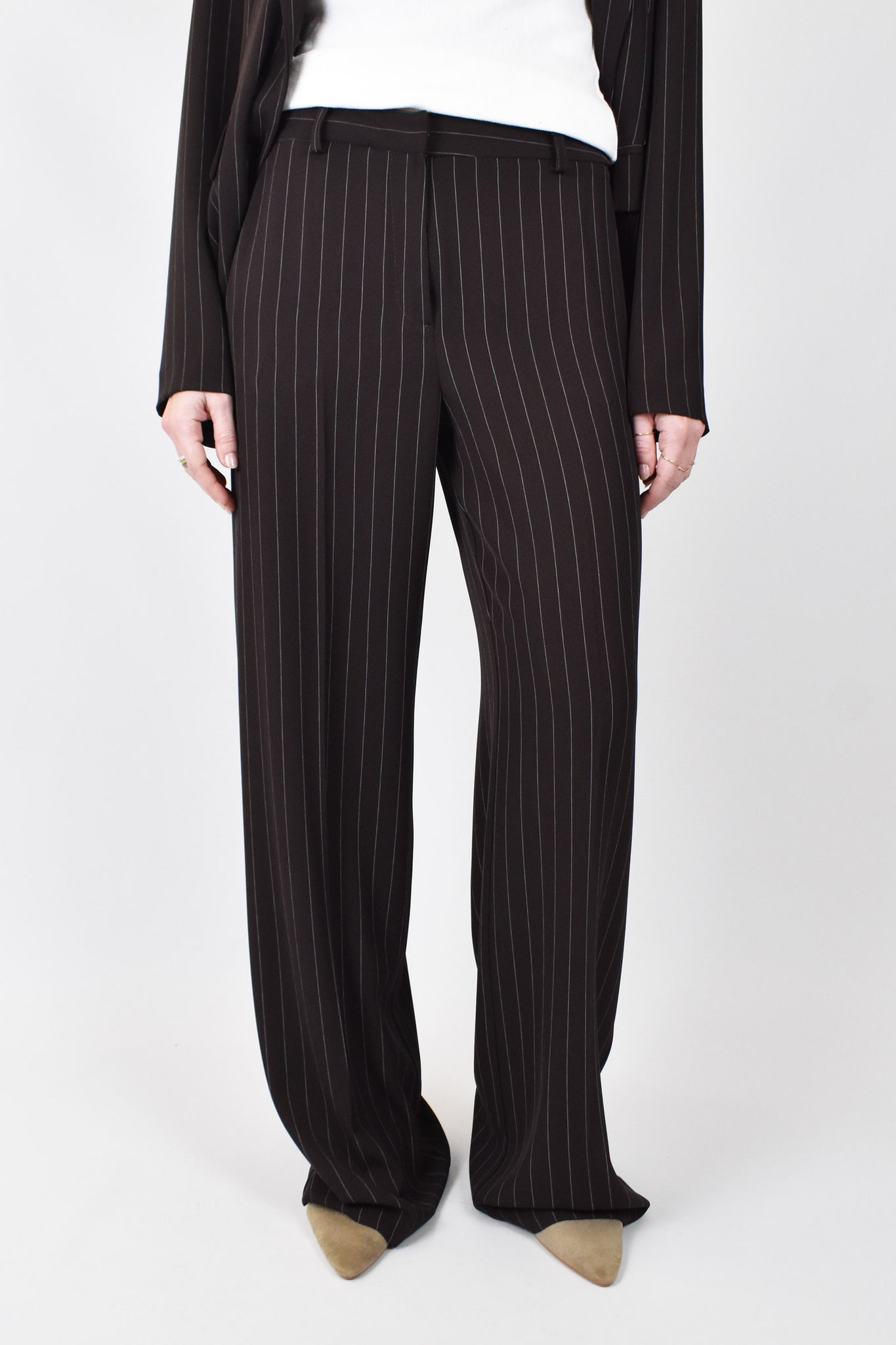 Pantalone straight leg realizzato in tessuto fluido gessato: chic e cool. Tasche laterali, vita media, chiusura con zip e bottoni. Vestibilità regolare.