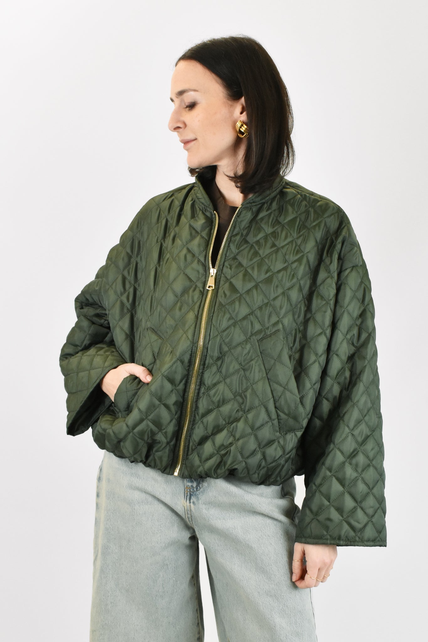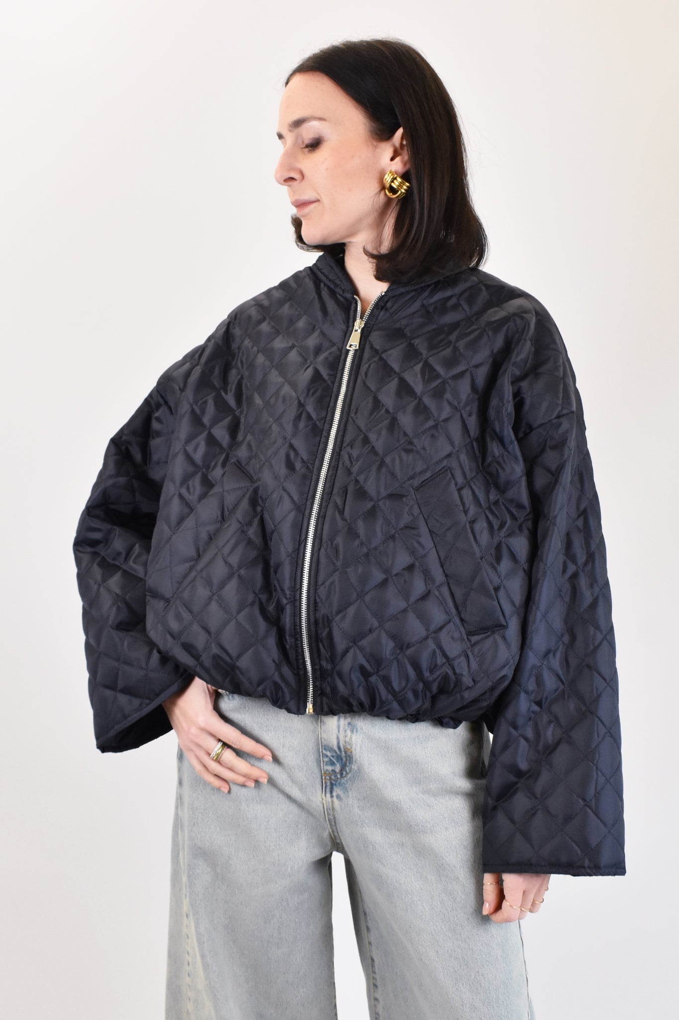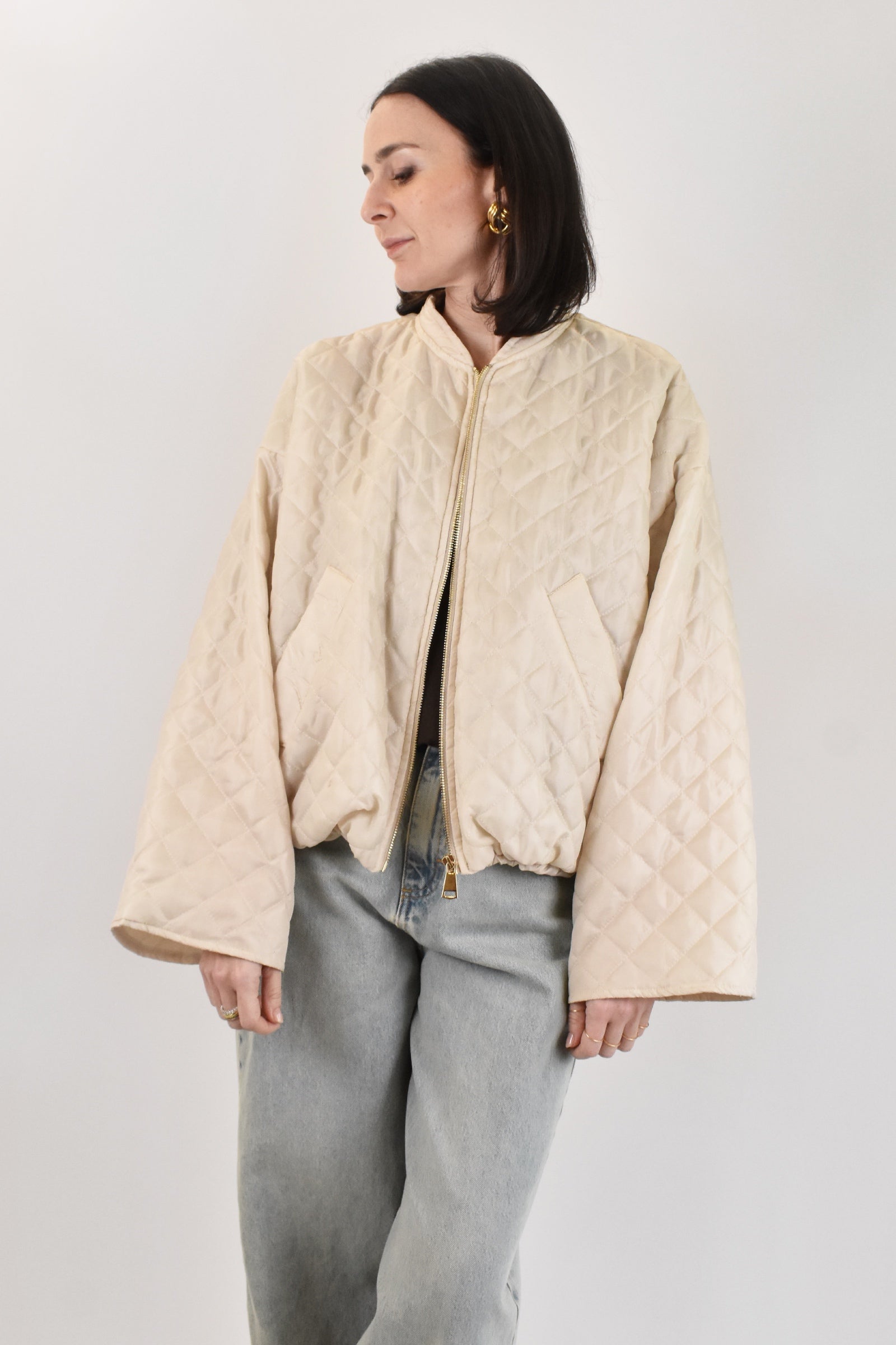 Bomber trapuntato con fodera interna tono su tono e zip, elastico sotto, vestibilità regolare