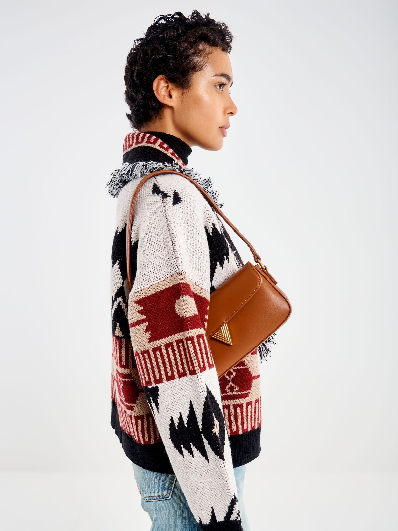 Borsa Pencil a spalla in ecopelle. Tracolla in similpelle rigida. Chiusura con bottone a pressione con calamita. Dettaglio logo metal plate Vicolo. Finiture anticate color oro. Tasca interna con cerniera e taschina piatta.