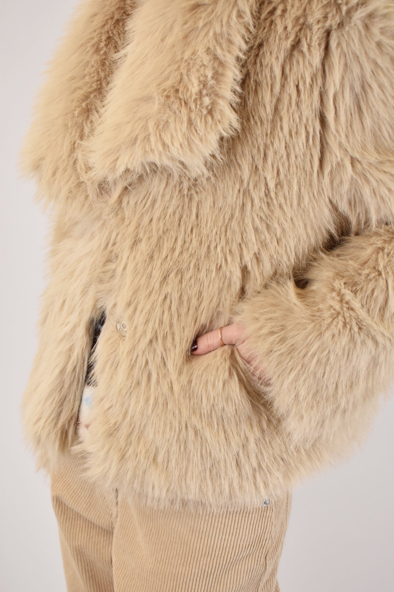 Ecopelliccia con revers e tasche laterali, chiusura con ganci, vestibilità regolare